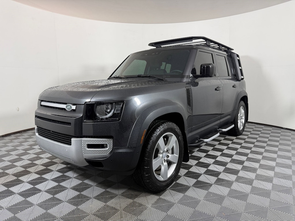 WHEELS: 20" GLOSS DARK GREY STYLE 5095 -inc: 5 split-spoke w/DT finish, Tires: 20", REAR SEAT CONVENIENCE PACK, PREMIUM UPGRADE INTERIOR PACK -inc: Leather Wrapped Steering Wheel w/PU Driver Airbag, 14-Way Heated & Cooled Electric Memory Front Seats, 4-way manual headrests, Leather Gearshift, Extended Leather Upgrade, PREMIUM INTERIOR PROTECTION & STORAGE PACK (5 SEAT), EMERGENCY PACK, EBONY, WINDSOR LEATHER SEAT TRIM, CARPATHIAN GREY PREMIUM METALLIC, BLACK FIXED SIDE STEPS, AIR SUSPENSION PACK -inc: Adaptive Dynamics, Electronic Air Suspension, Wireless Phone Connectivity. This Land Rover Defender 110 has a powerful Intercooled Turbo Gas/Electric I-6 3.0 L/183 engine powering this Automatic transmission.