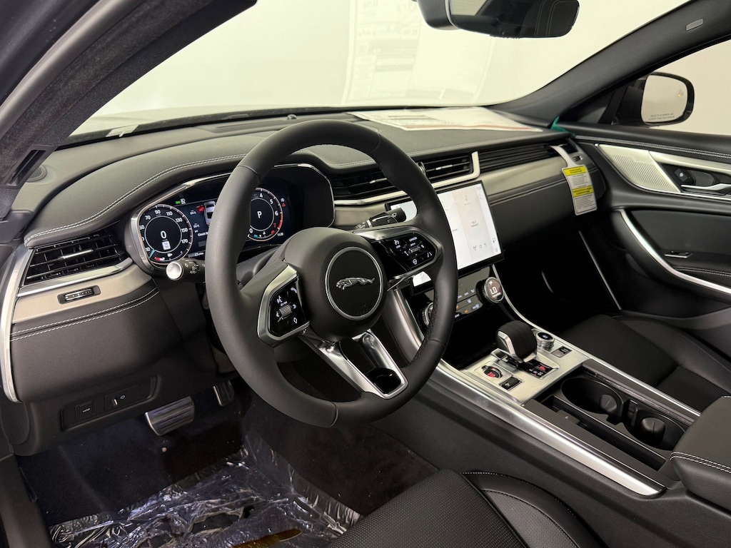 Tires: 19", Tire Specific Low Tire Pressure Warning, Sport Heated Leather Steering Wheel w/Auto Tilt-Away, Smart Device Remote Engine Start, Smart Device Integration, Side Impact Beams, Seats w/Leatherette Back Material, Remote Releases -Inc: Power Cargo Access and Power Fuel, Remote Keyless Entry w/Integrated Key Transmitter, Illuminated Entry and Panic Button, Rear Traffic Monitor, Rear Fog Lamps, Rear Cupholder, Real-Time Traffic Display, Radio: Meridian 400W Sound System -inc: Pivi Pro w/11.4" capacitive touchscreen, Amazon Alexa, online pack w/data plan, Apple CarPlay, Android Auto, dynamic volume control, Bluetooth connectivity, audio streaming, SiriusXM satellite radio, USB, 12V socket in center console, InControl Remote (including remote climate control, lock and unlock, beep and flash, SOS emergency call, Jaguar optimized assistance call and stolen vehicle locator) and wireless device charging, Radio w/Seek-Scan, Clock, Steering Wheel Controls, Voice Activation, Radio Data System and 10 Gb Internal Memory, Quasi-Dual Stainless Steel Exhaust, Proximity Key For Doors And Push Button Start, Power Trunk Rear Cargo Access, Power Tilt/Telescoping Steering Column, Power Rear Windows.