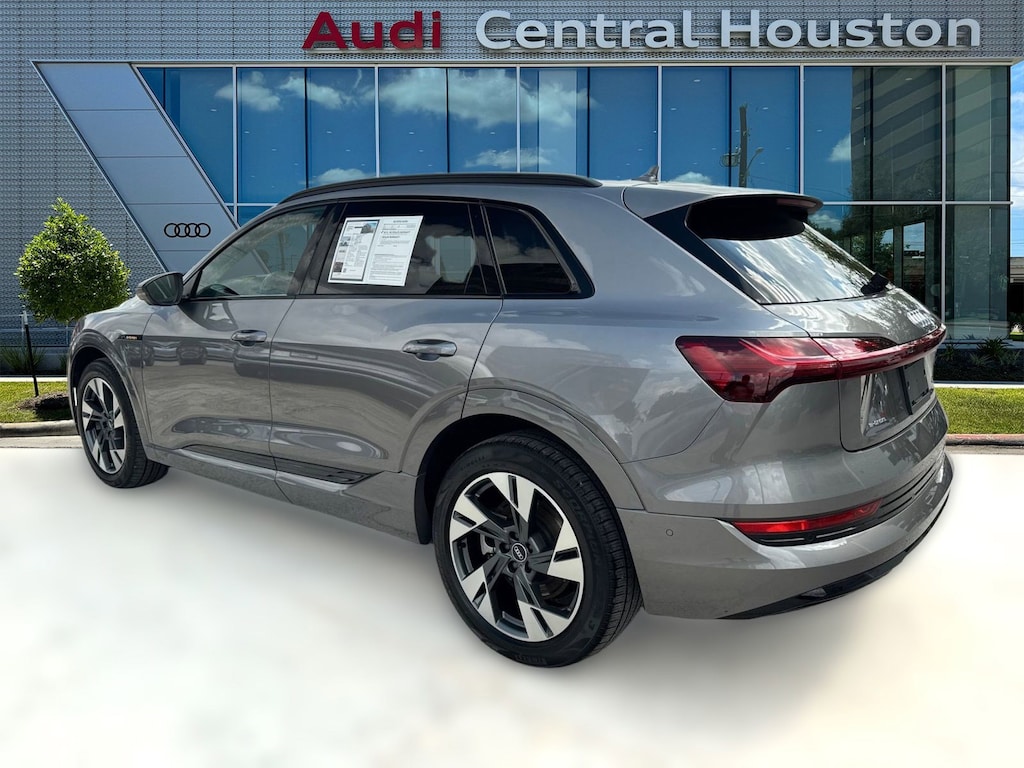 Inside, the e-tron Premium offers a sophisticated and spacious environment designed with driver and passenger comfort in mind. High-quality materials, advanced ergonomics, and intuitive digital displays highlight Audi's attention to detail. The Audi Virtual Cockpit and MMI touch response system provide a seamless connection to navigation, entertainment, and vehicle settings. With plenty of room for passengers and cargo, this SUV is versatile enough for family needs while maintaining the elegance expected from Audi.